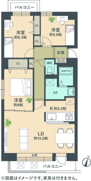 3LDK (LDK6.3帖、洋5.0帖、洋6帖)