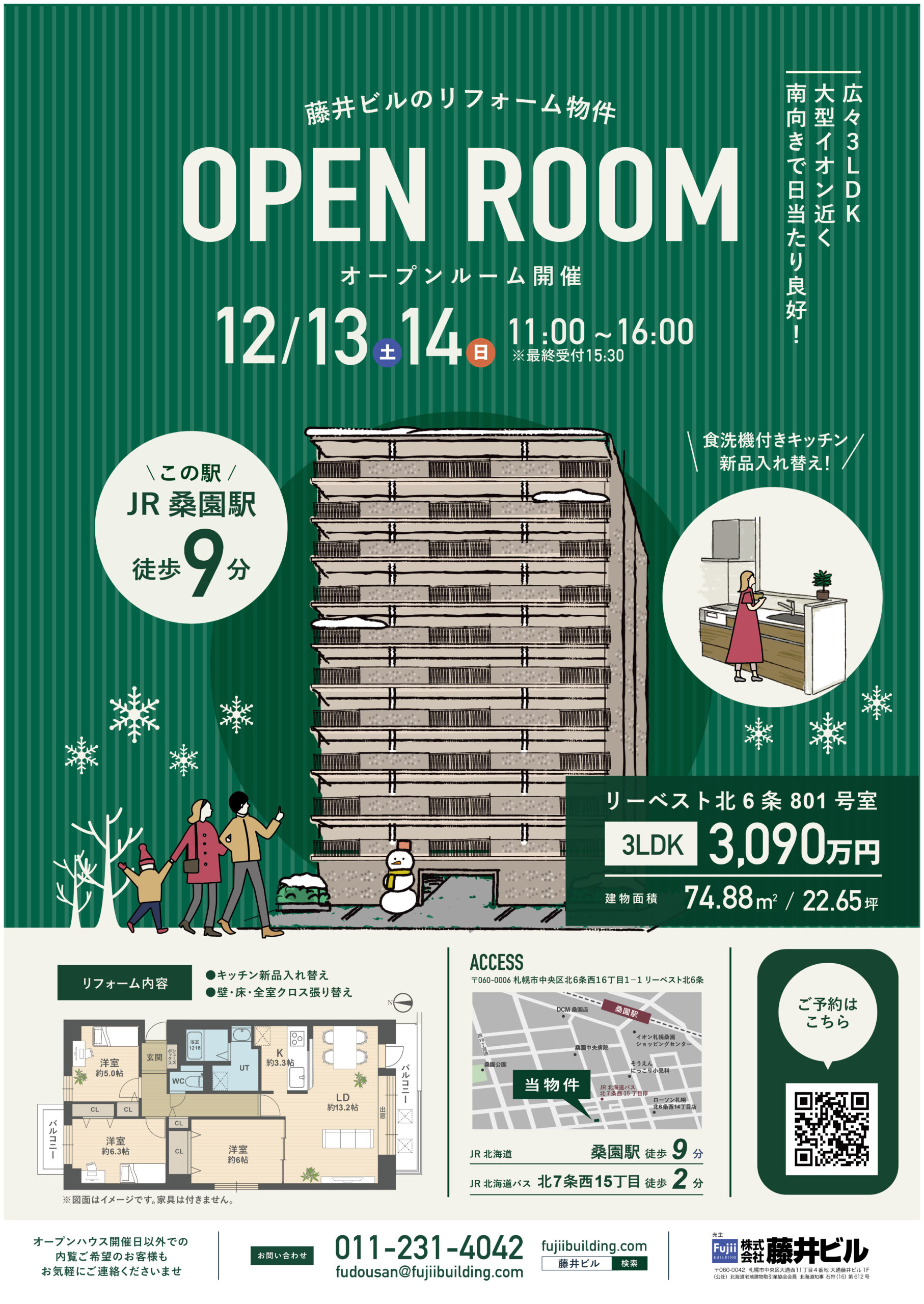 今回は、人気エリア JR「桑園」駅近くの物件をリフォームしました。